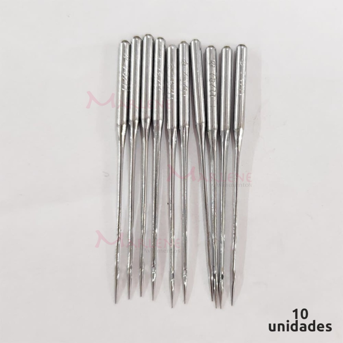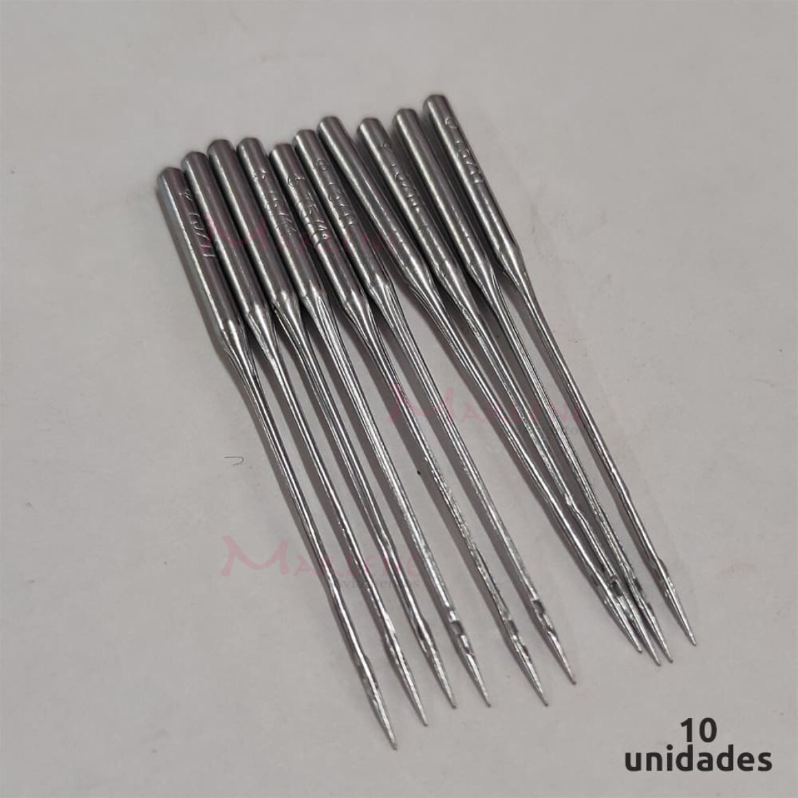 Detalhes: Agulha para máquina galoneira nº11 (75/11) com 10 unidades.