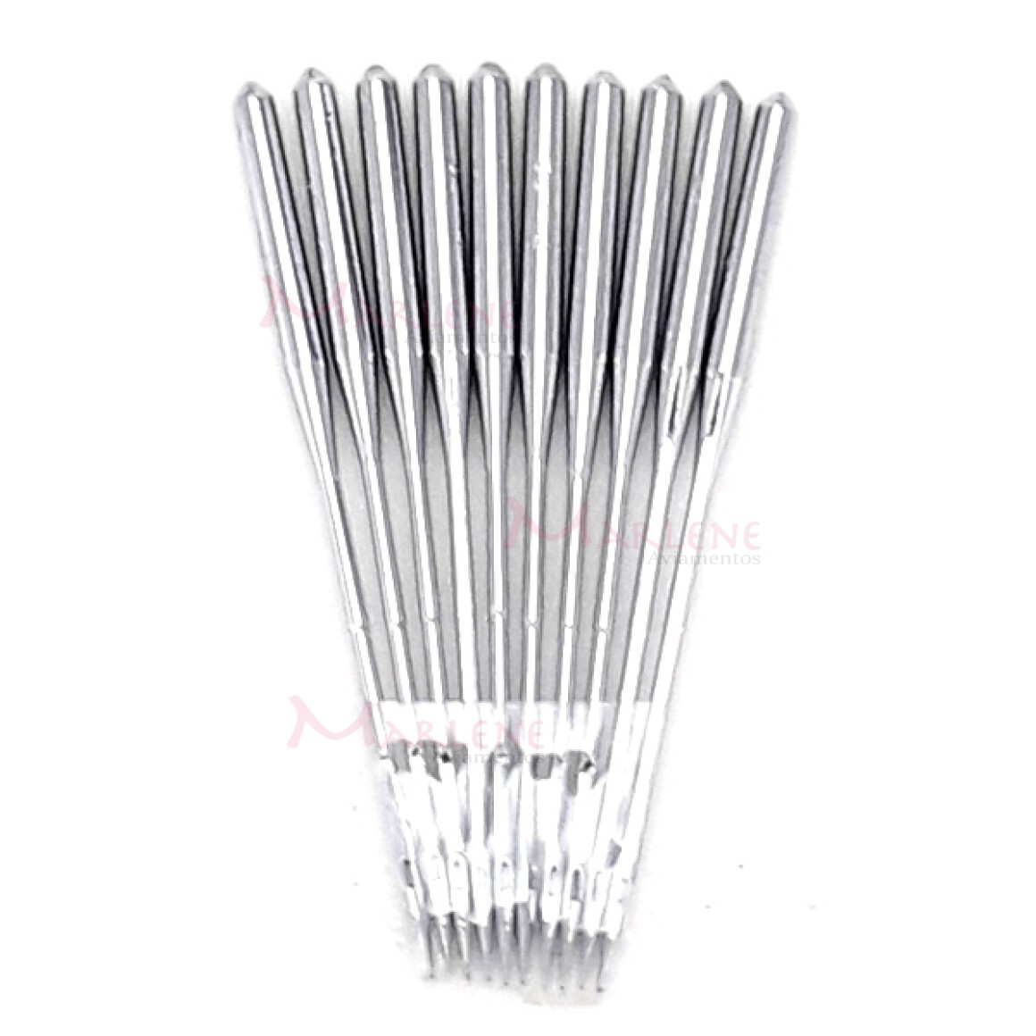 Uso: Usada em máquina reta industrial para costura de tecidos leves como: tule, chifon, organza, entre outros.