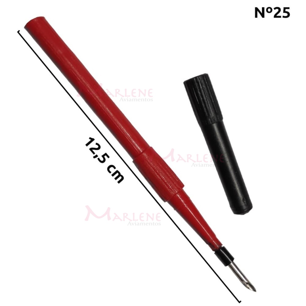 Detalhes: Agulha ponto russo n°25 cabo plástico vermelha