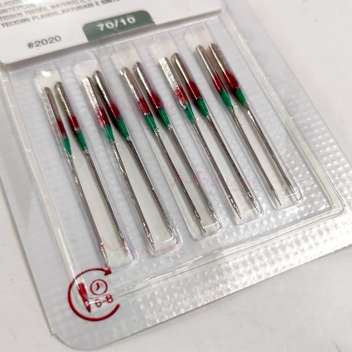 Uso: Agulha usada em máquinas domésticas para costura de tecidos leves, seja planos, naturais ou sintéticos.