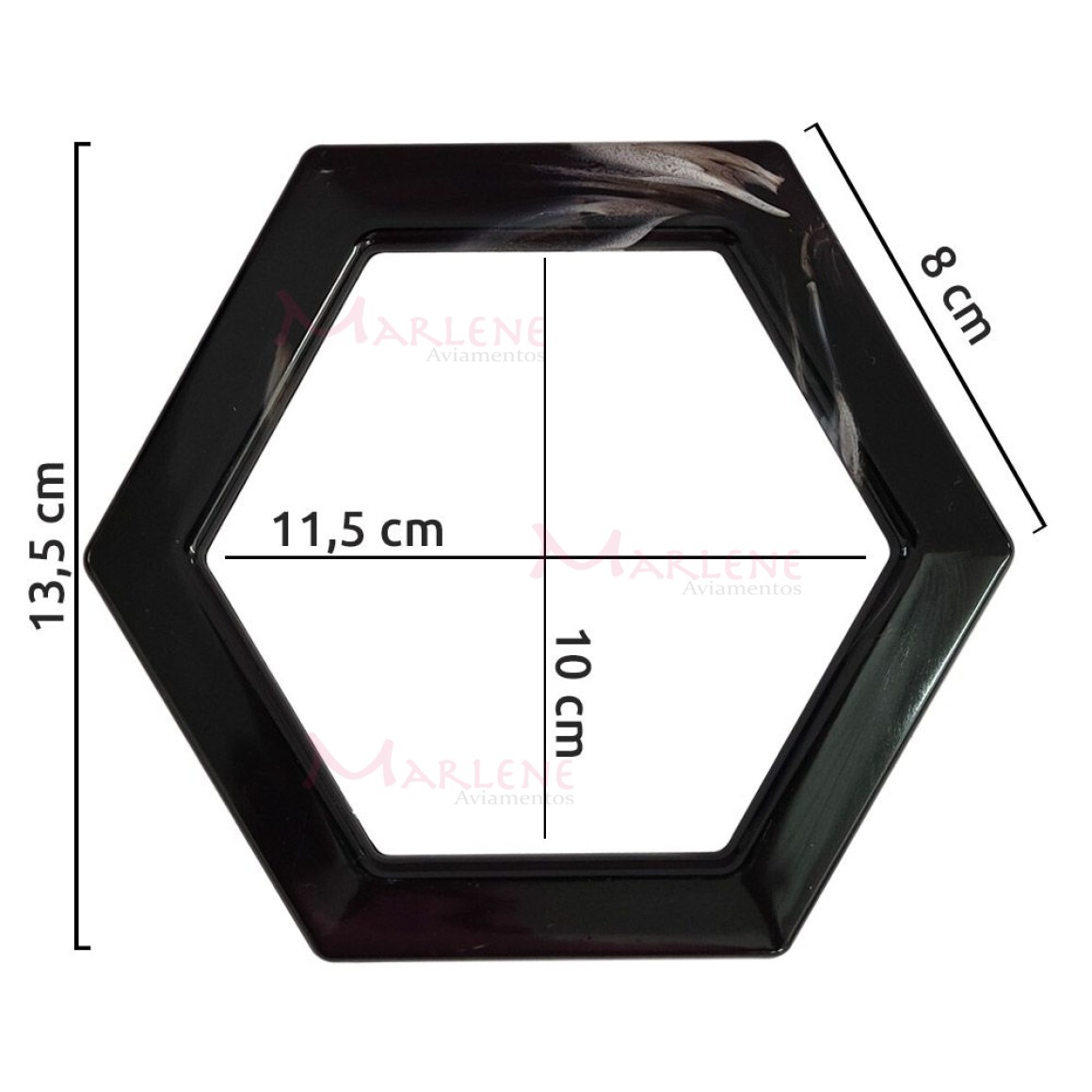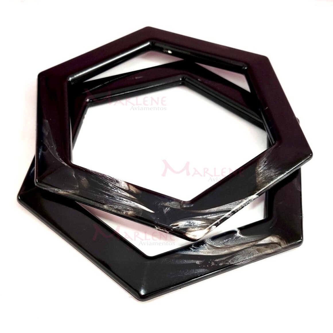 Detalhes: Alça para bolsa hexagonal cor mesclada preta 7708 com 1 par (Plástica)