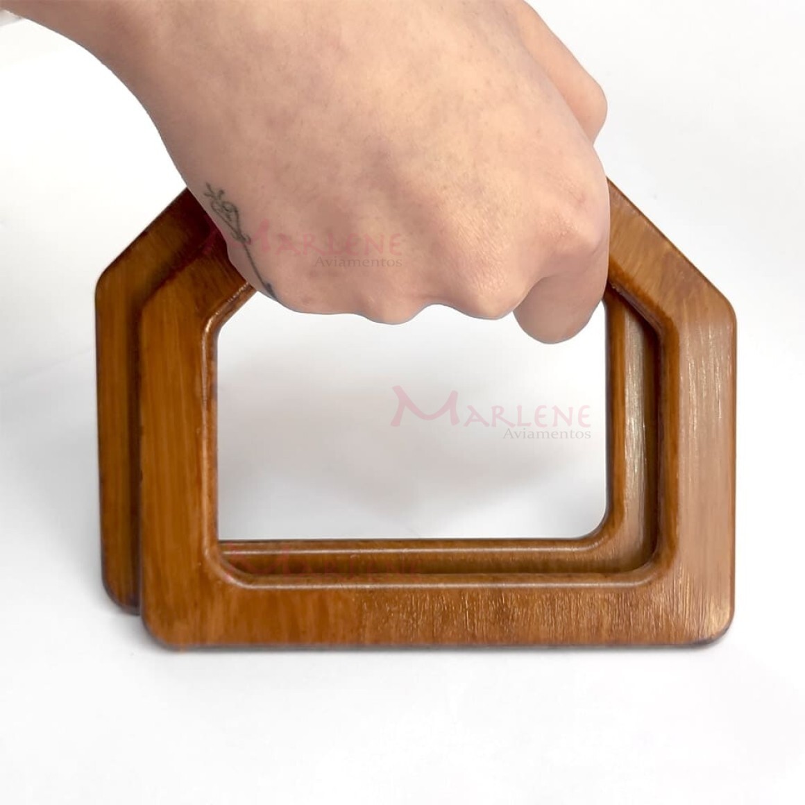 Detalhes: Alça para bolsa meia argola cor madeira envernizada 7652 com 1 par (Plástica)