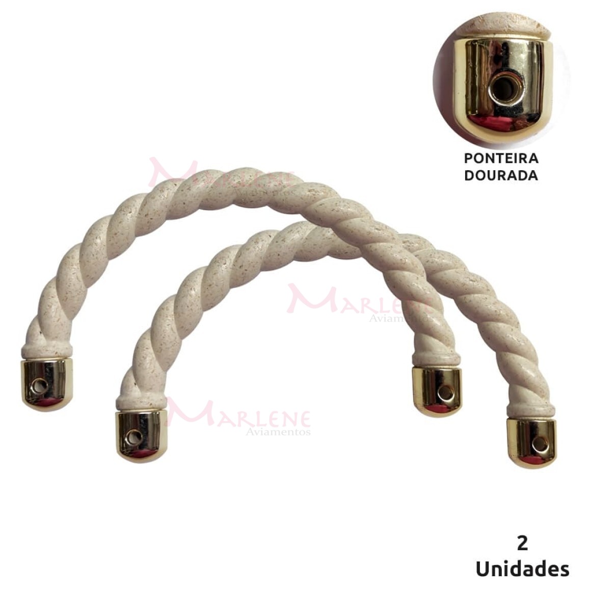 Detalhes: Alça trançada palha com ponteira dourada 7450 com 1 par