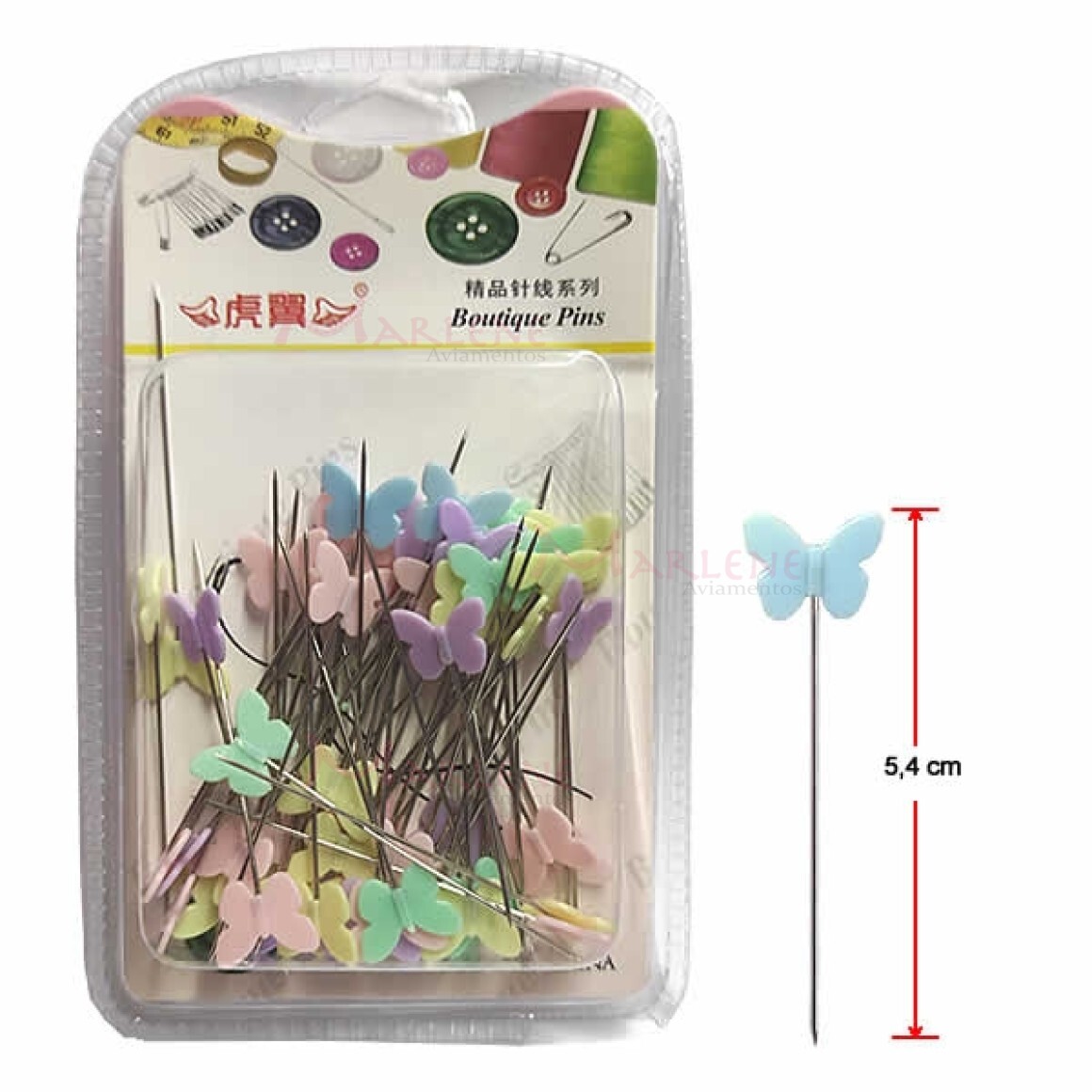 Detalhes: Alfinete para patchwork cabeça borboleta com 60 unidades