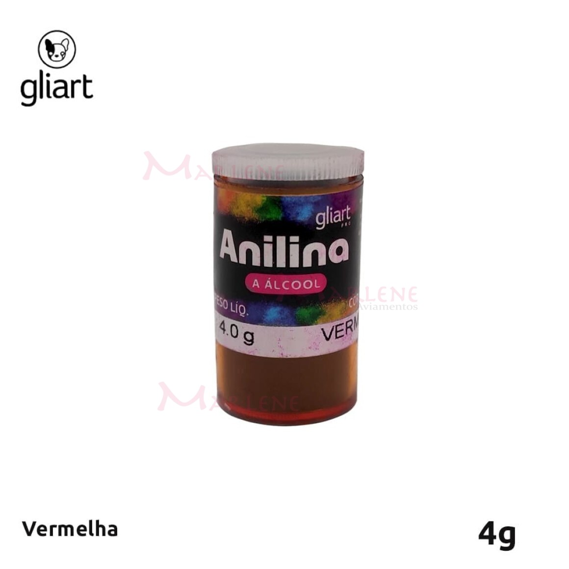 Detalhes: Anilina em pó a álcool vermelha com 4 g Gliart