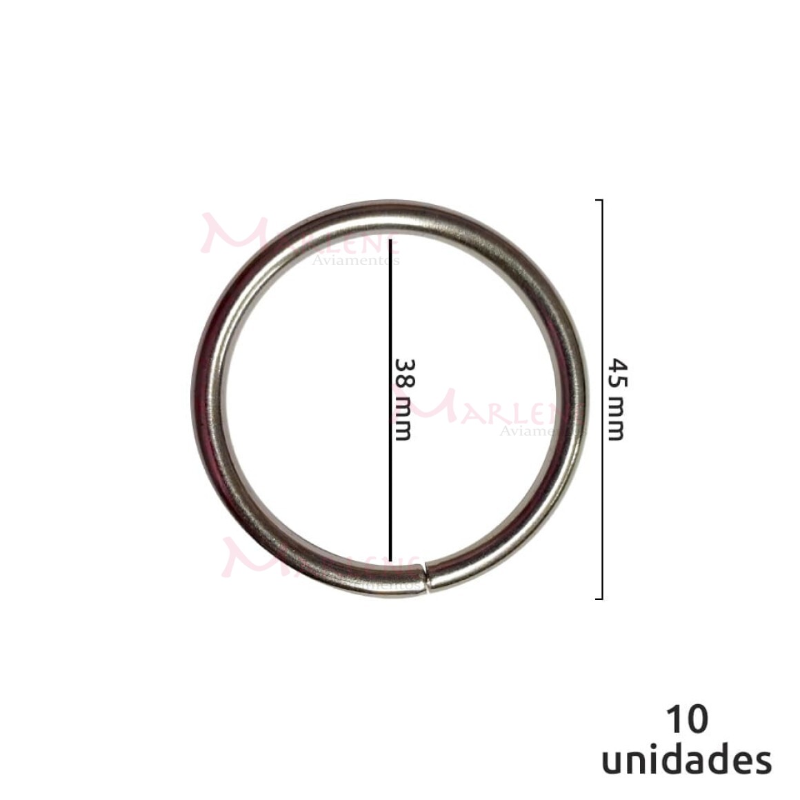 Detalhes: Argola de metal 38 mm níquel com 10 unidades