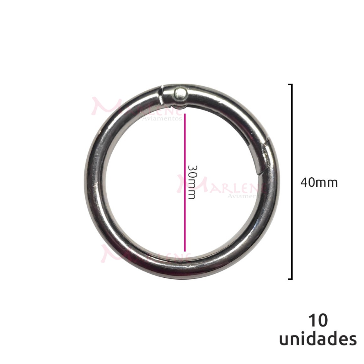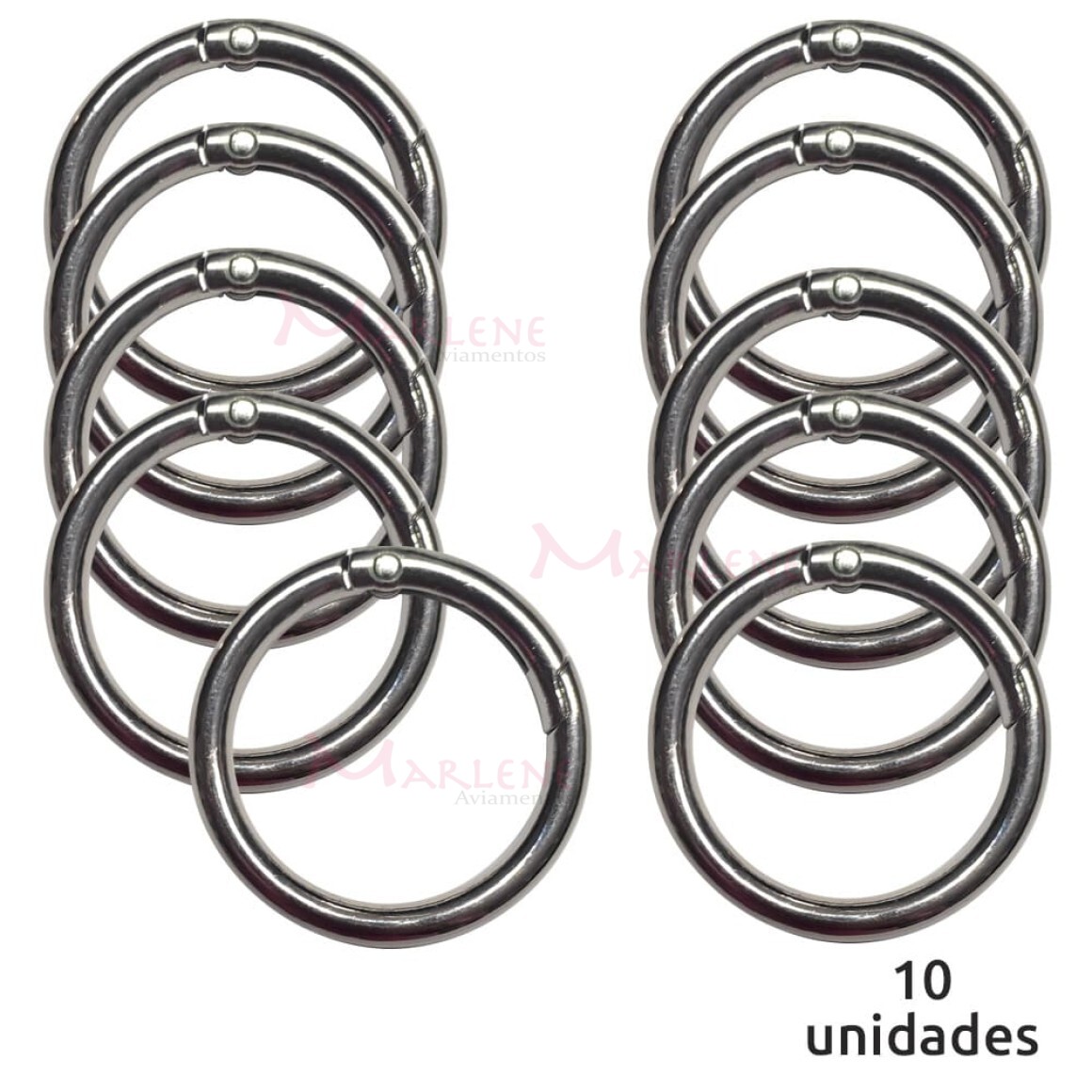 2. Argola articulada 30mm níquel (Mosquetão) 10 unidades importada