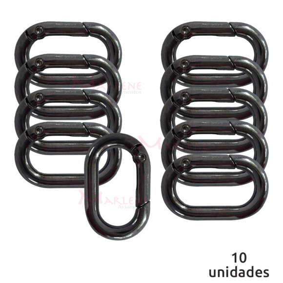 Detalhes: Argola articulada oval 25mm grafite (Mosquetão) com 10 unidades