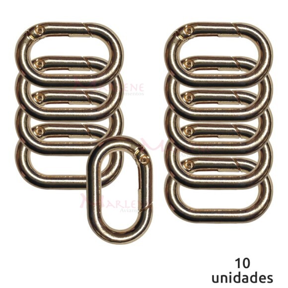 Detalhes: Argola articulada oval 25mm ouro (Mosquetão) com 10 unidades