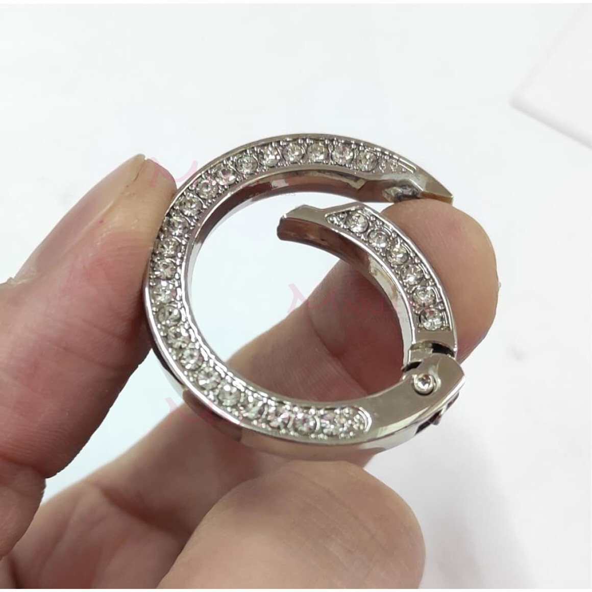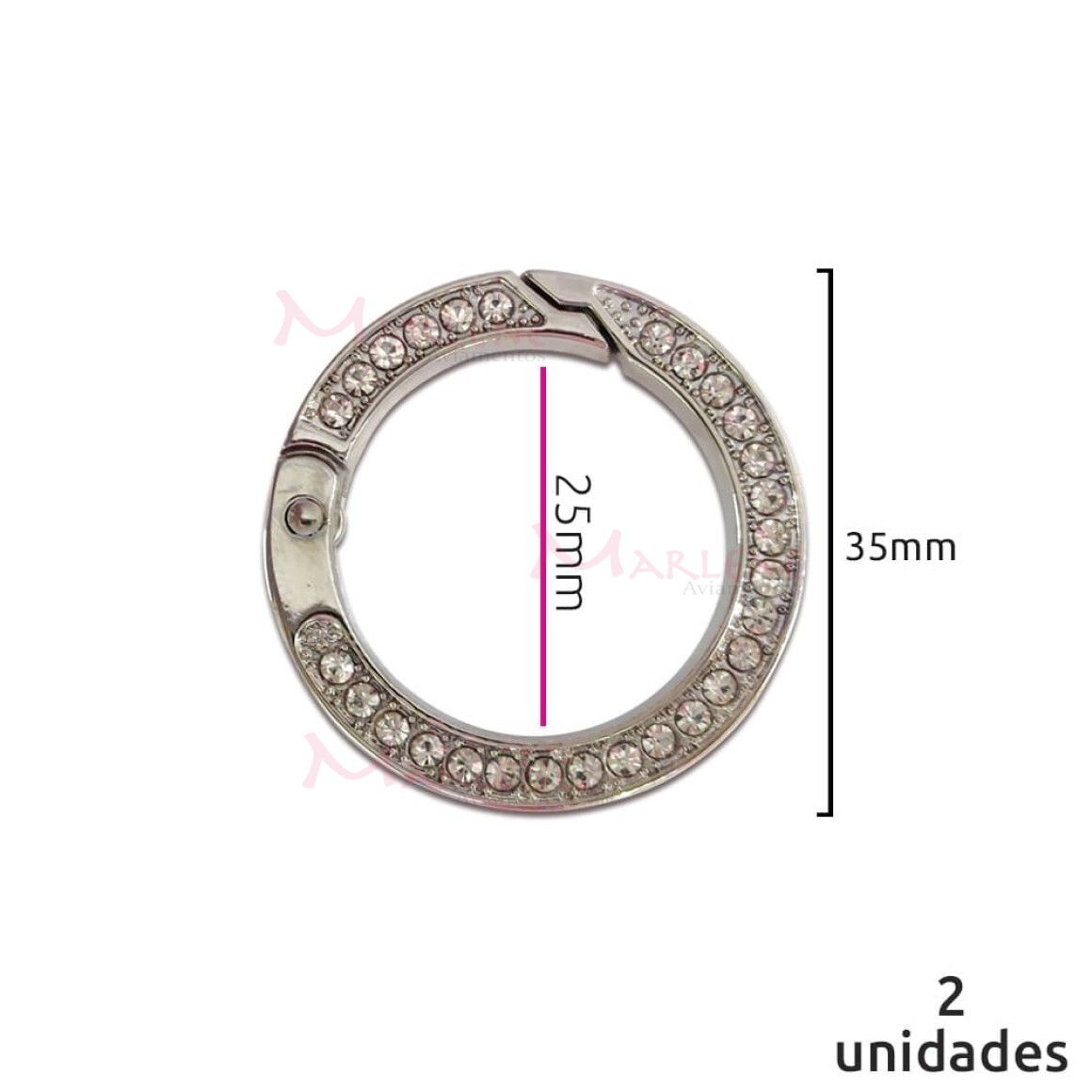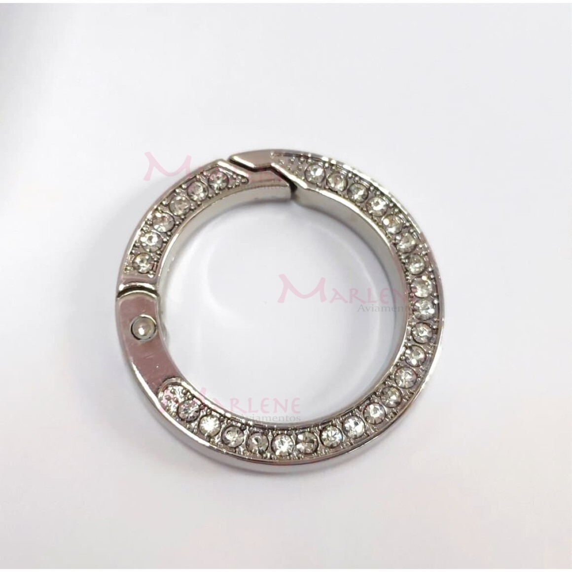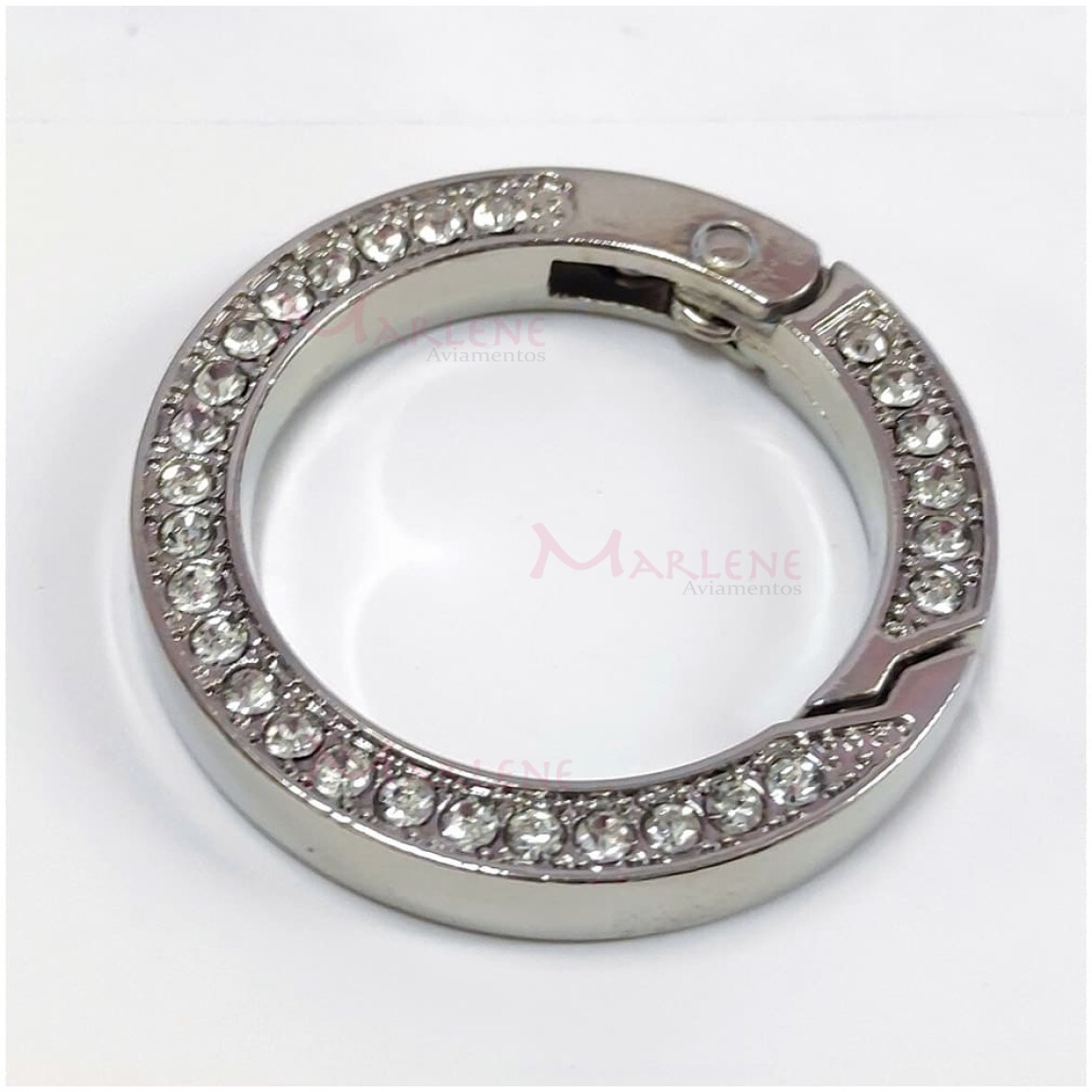 Detalhes: Argola articulada com strass 25mm níquel (Mosquetão) 10 unidades