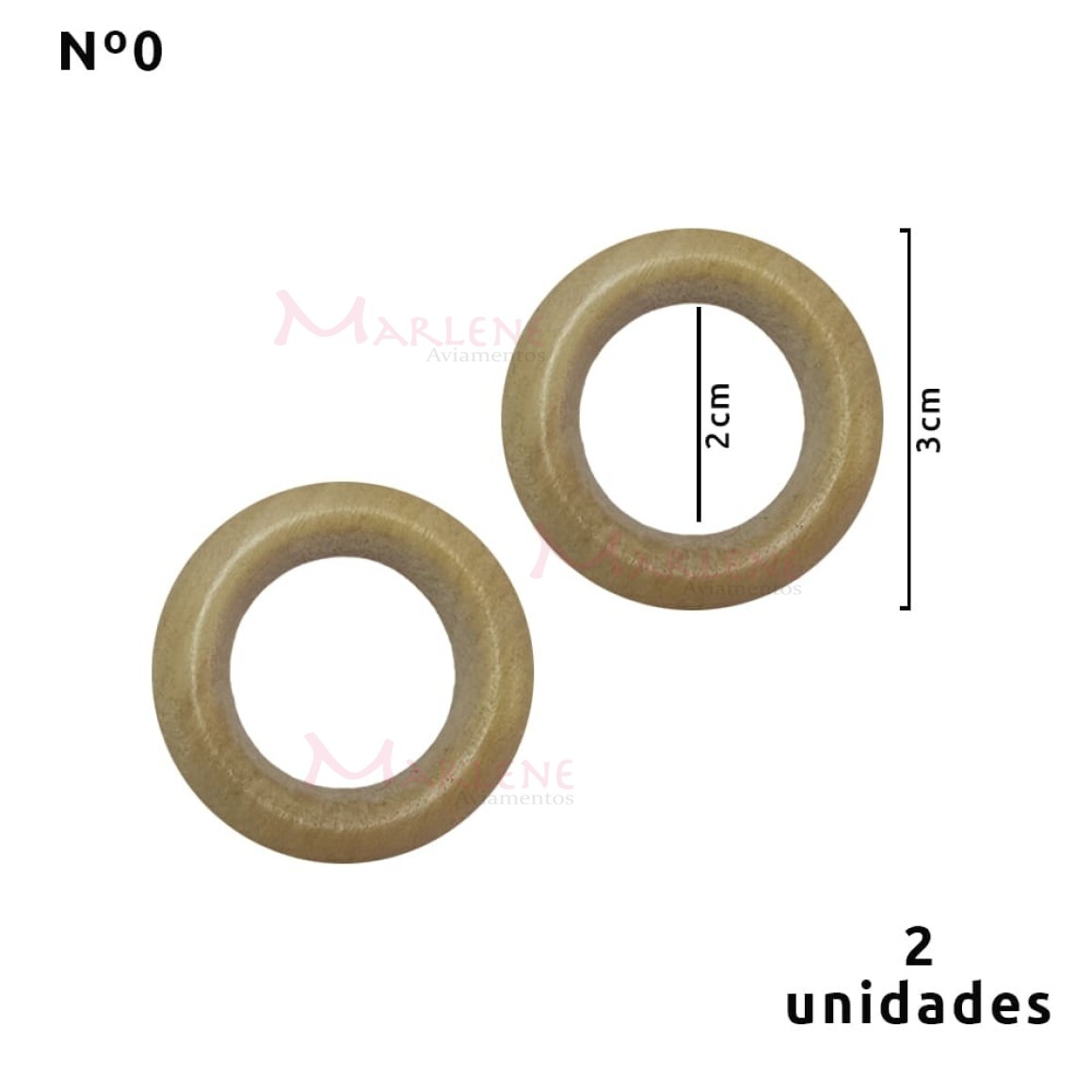 Detalhes: Argola de madeira 20 mm (Tam.0) marfim com 2 unidades