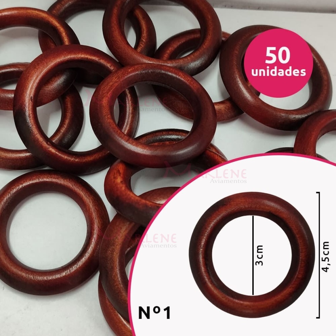 Detalhes: Argola de madeira 30 mm (Tam.1) mogno com 50 unidades