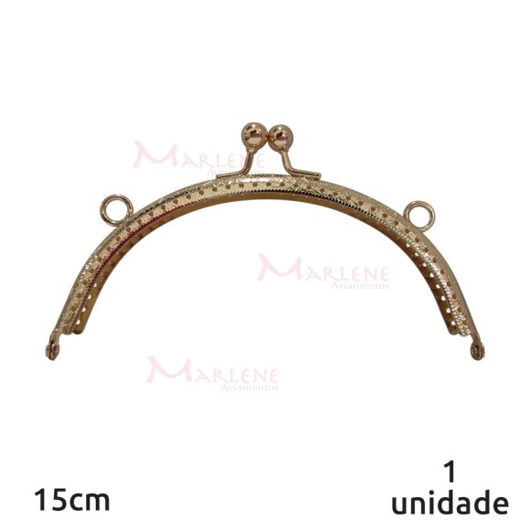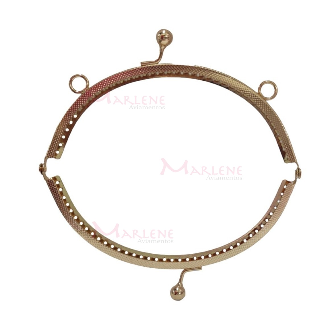 Detalhes: Armação fecho da vovó oval 15cm dourado c/furo e argola RO.151256