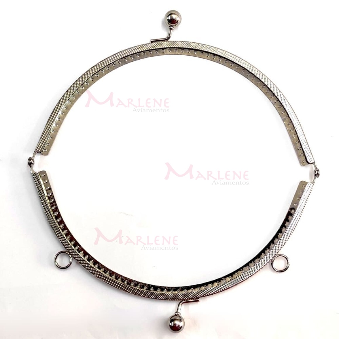 Detalhes: Armação fecho da vovó oval 20cm níquel c/furo e argola RO.151256