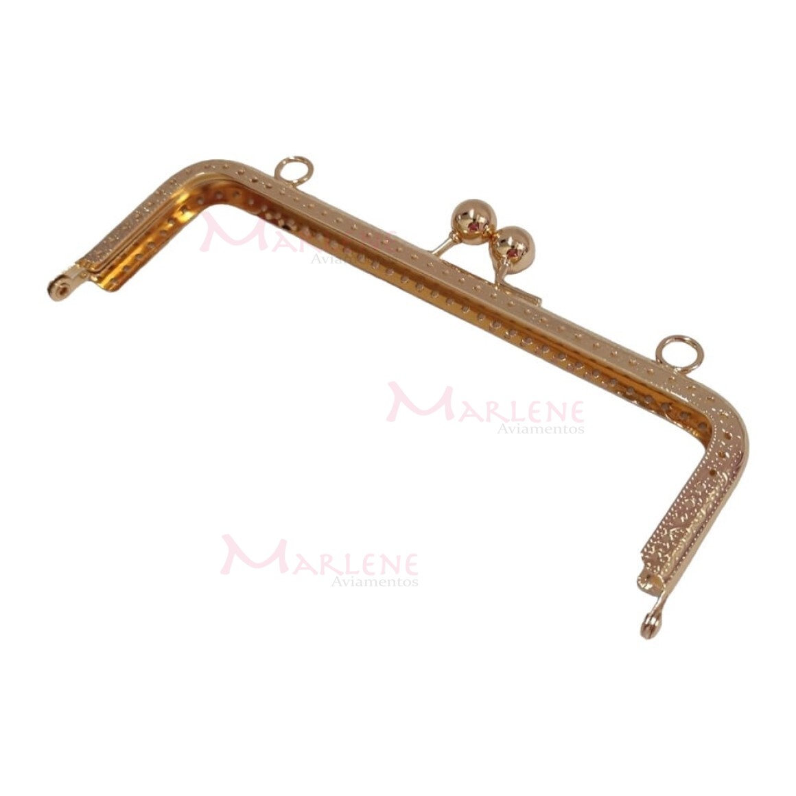 Detalhes: Armação fecho da vovó retangular 18cm dourado c/furo e argola RO.151255