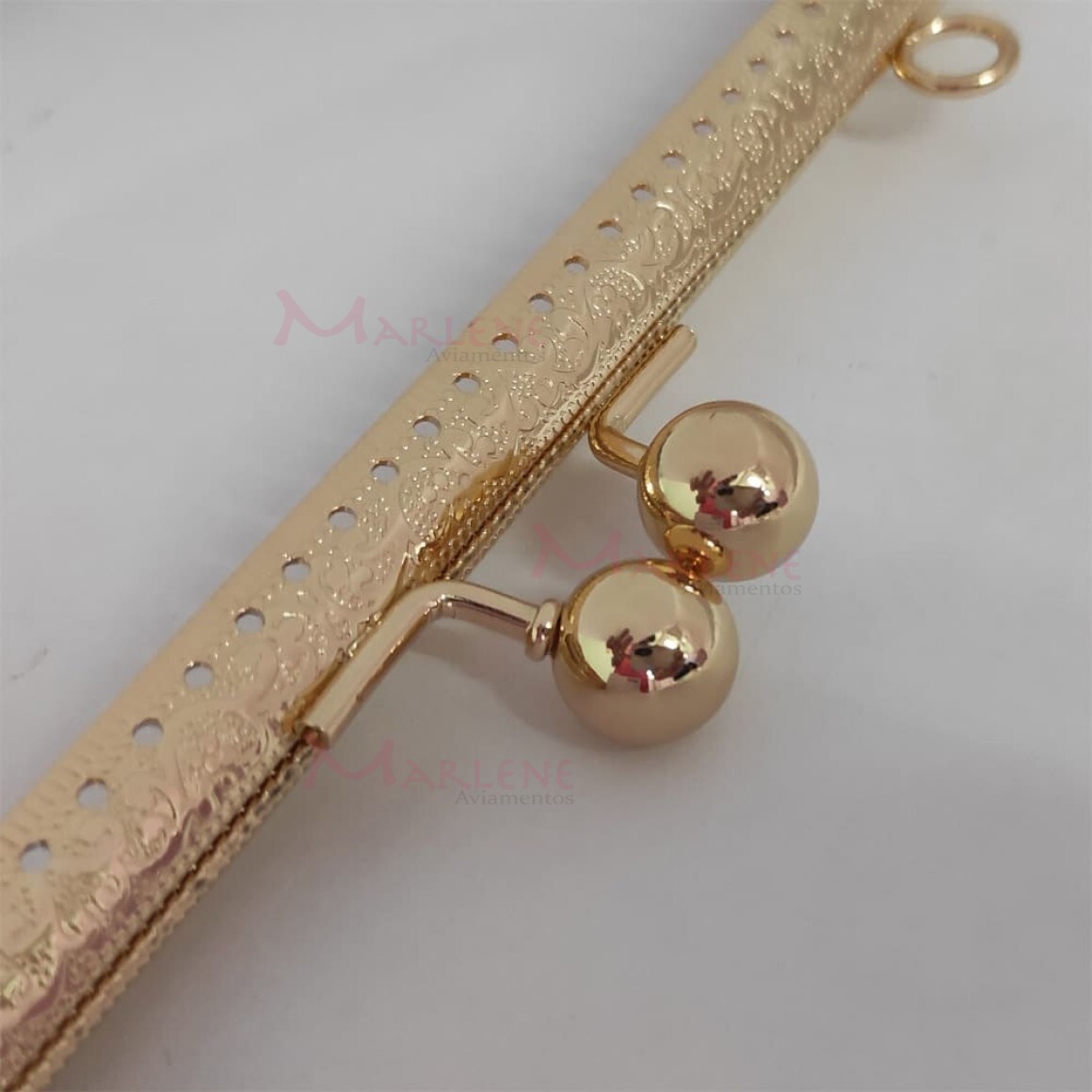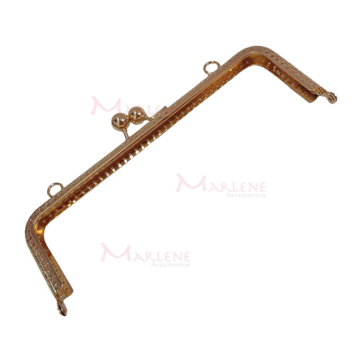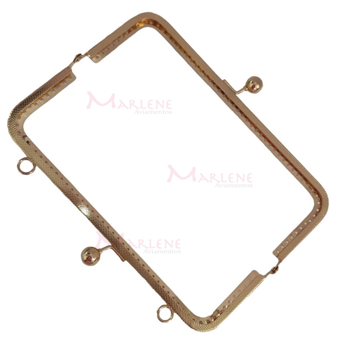 Detalhes: Armação fecho da vovó retangular 20cm dourado c/furo e argola RO.151255