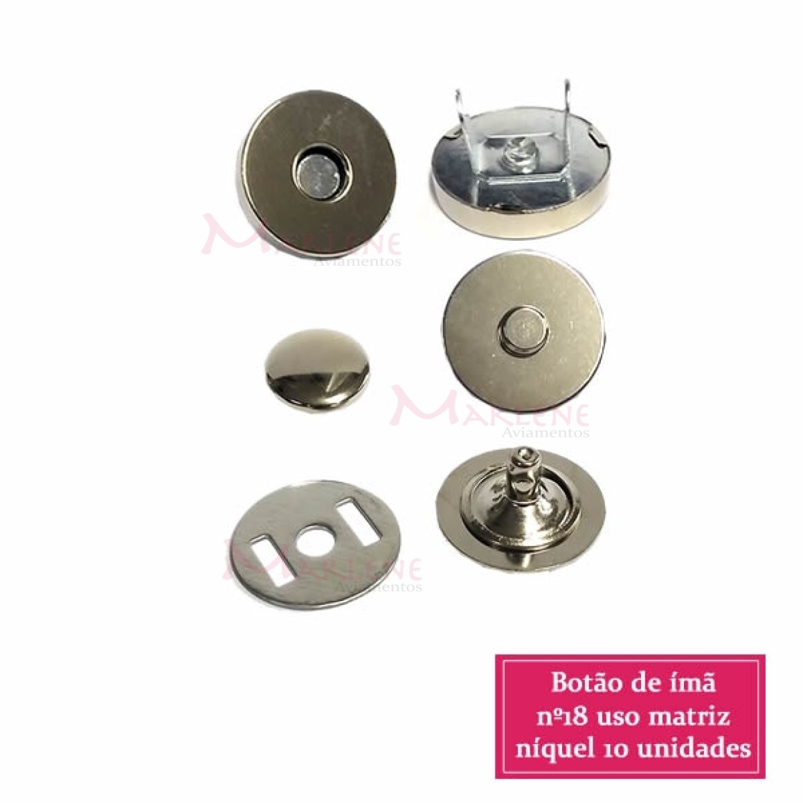 Detalhes: Botão de ímã 18mm com 10 níquel com rebite, uso com matriz.