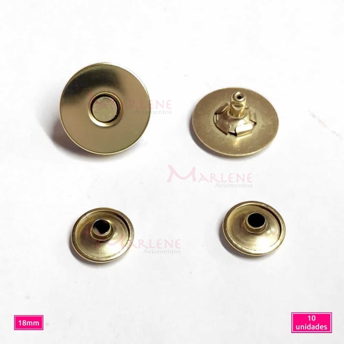 Detalhes: Botão de ímã 18mm rebite duplo latonado com 10 unidades