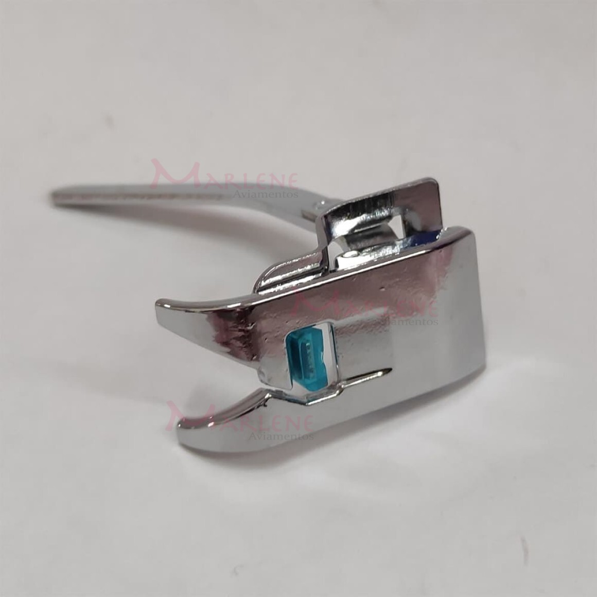 Uso: Calcador usado para costura malha e lã em máquina doméstica. Sua Haste lateral encosta na haste de ajuste da agulha, dando firmeza a costura em malhas, evitando que o tecido enrugue ou franza no meio do processo.