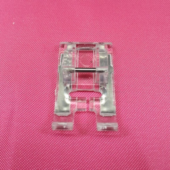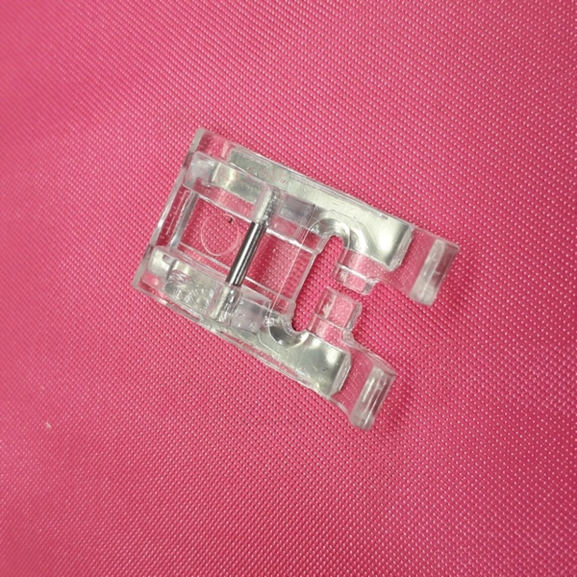Detalhes: Calcador para ponto decorativo, ponto cheio ou para cetim em máquina doméstica. É utilizado quando se quer fazer os pontos cheios decorativos e também pode ser utilizado para cobrir cordão.