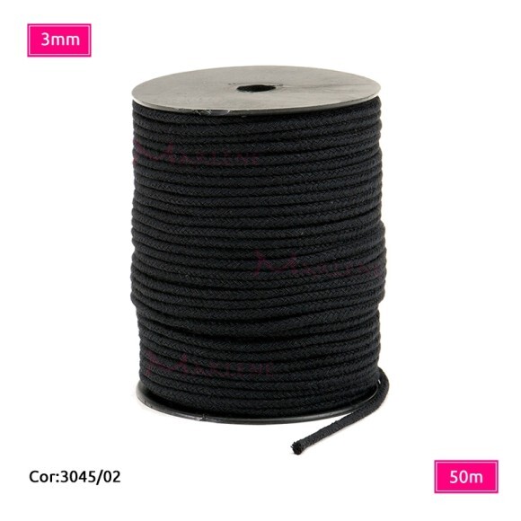 Detalhes: Cordão trançado São José 3mm de algodão preto com 50m