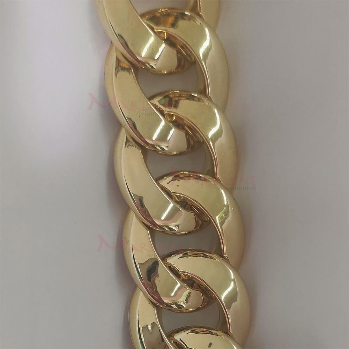 Corrente de resina elo 34X32mm dourada com aproximidamente 53 elos no metro
