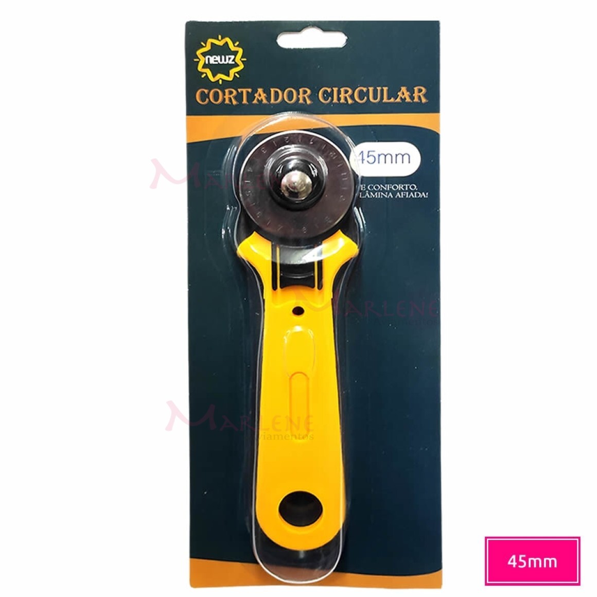 Detalhes: Cortador manual circular 45mm Newz. Possui trava de segurança, para evitar acidentes com a lâmina.