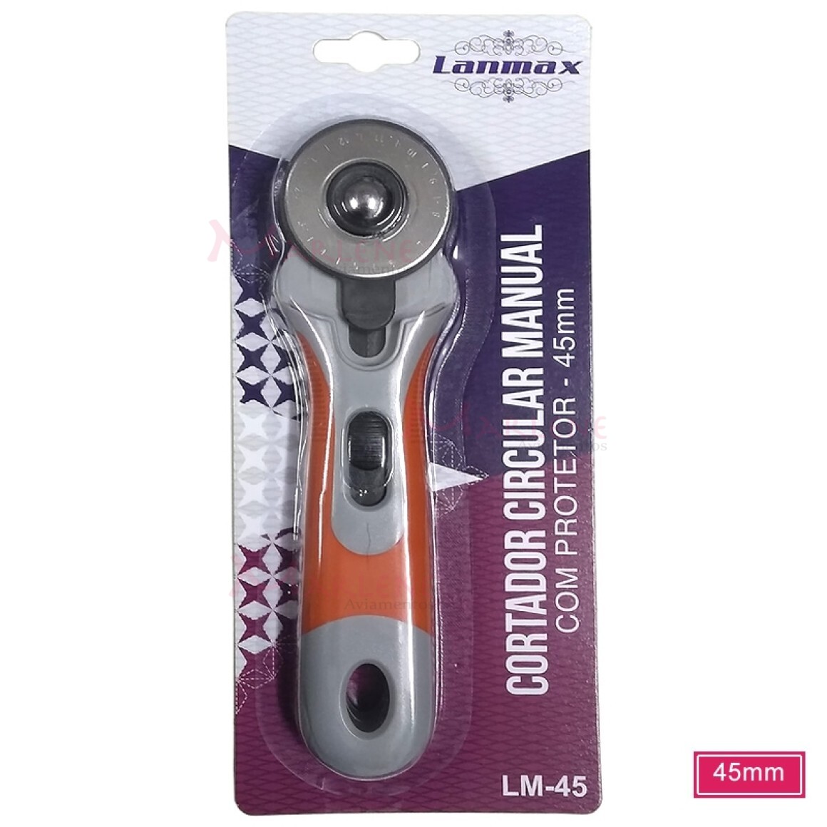Detalhes: Cortador circular 45mm manual Lanmax. Possui trava de segurança, podendo ser usados por canhotos ou destros.