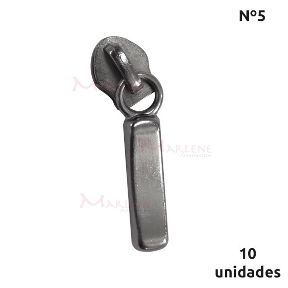 Detalhes: Cursor de ziper nº5 trabalhado com 10 unidades níquel N56L-582