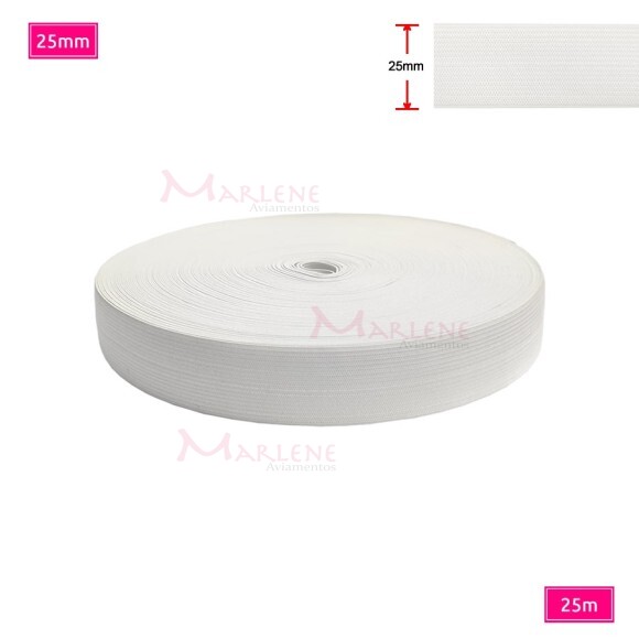 Uso: Elástico em poliéster e elastodieno, utilizado em vestuário e artesanto no geral.