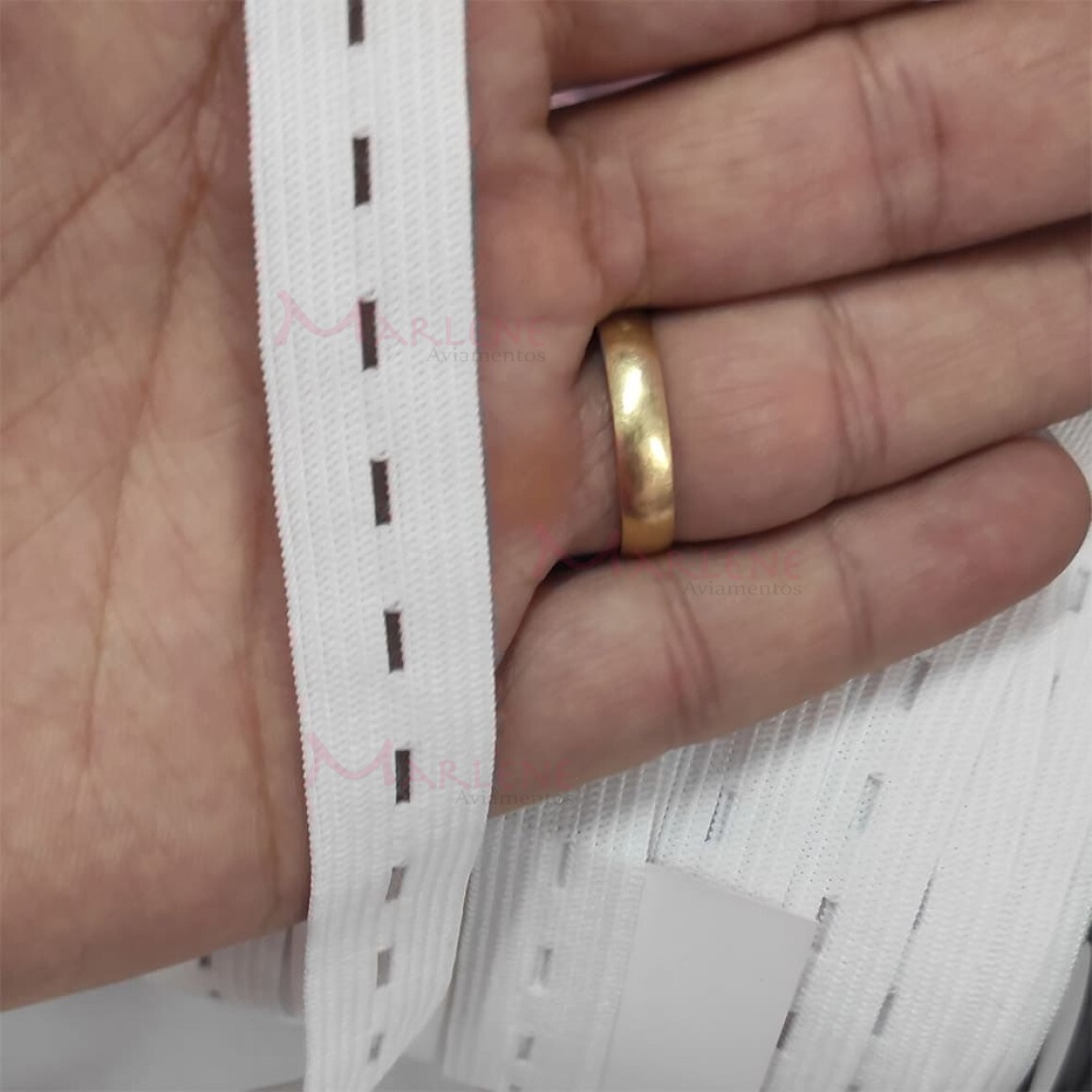 Uso: Elástico Elastok em poliéster e elastano, utilizado em vestuário, pano de sofá, pano de colchão e artesanto no geral.