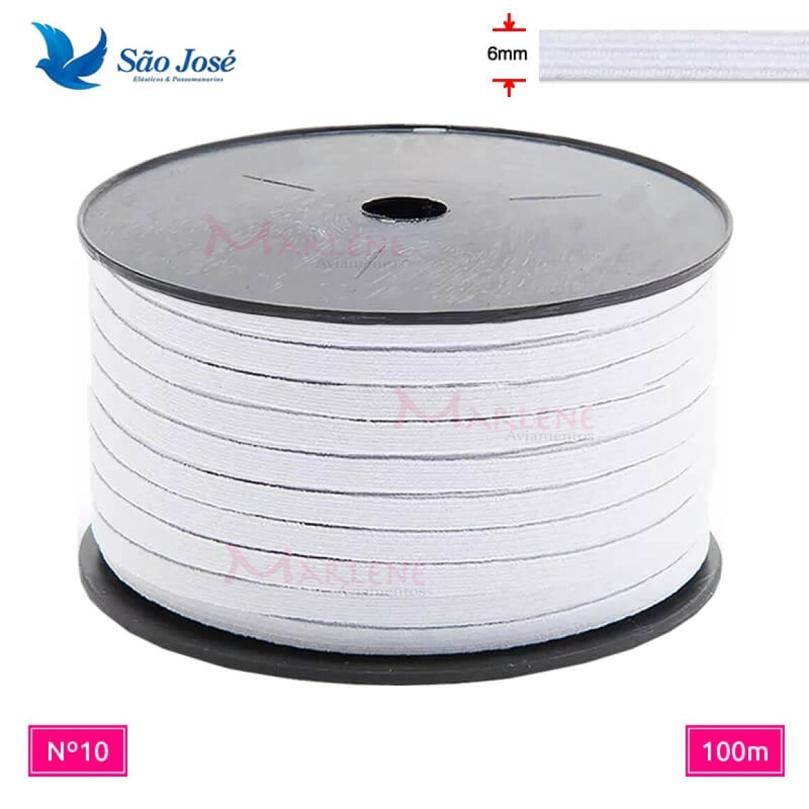 Detalhes: Elástico São José pigeon nº10 6mm 100m branco