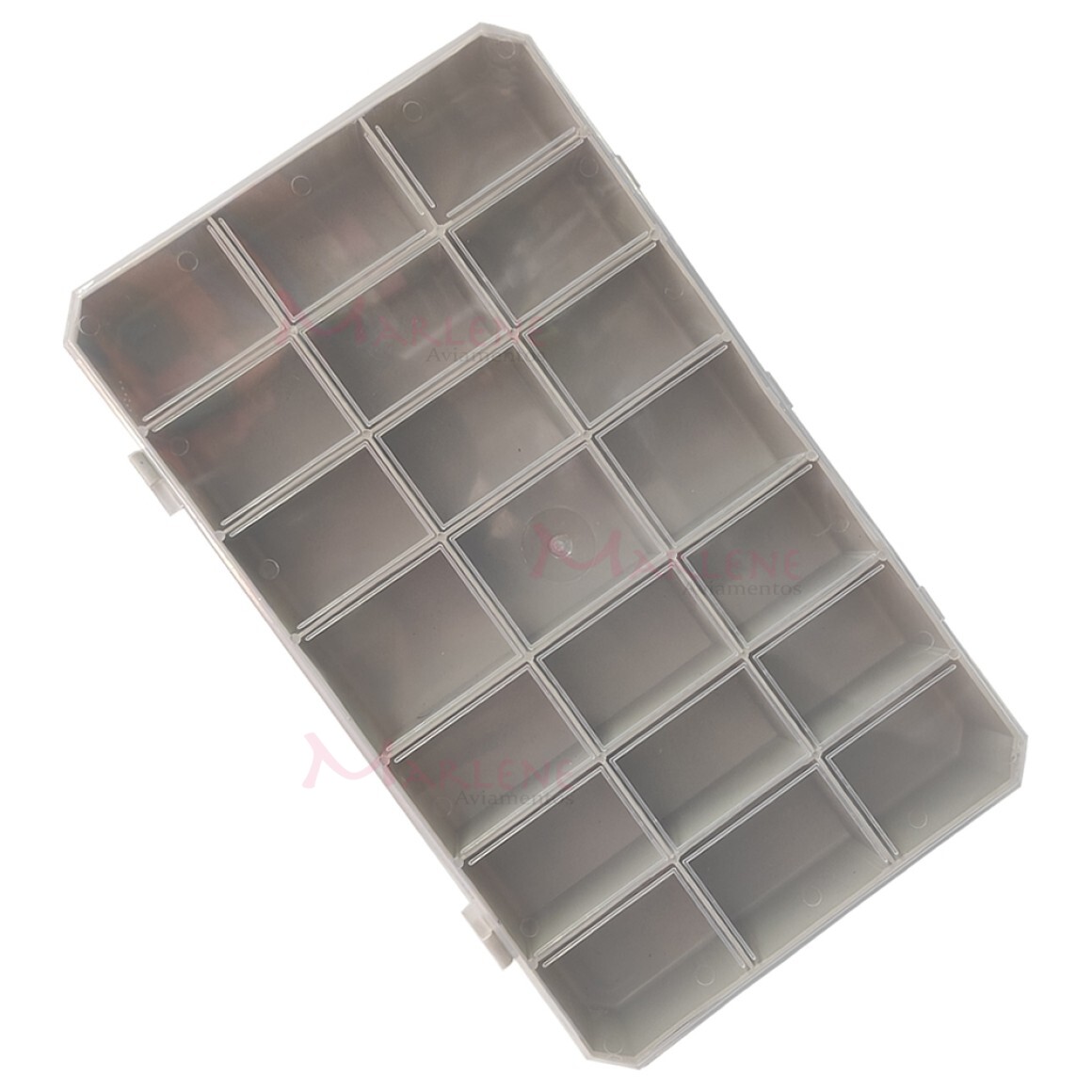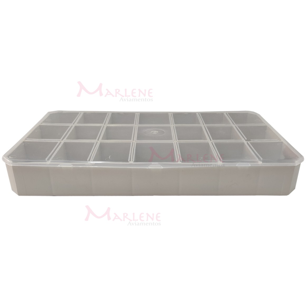 Detalhes: Estojo retangular branco gelo com 21 divisórias