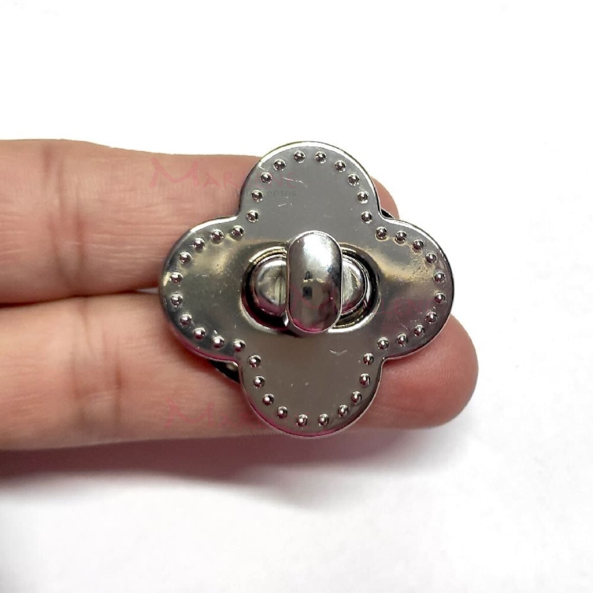 Detalhes: Fecho para bolsa flor níquel com encaixe XK-1260