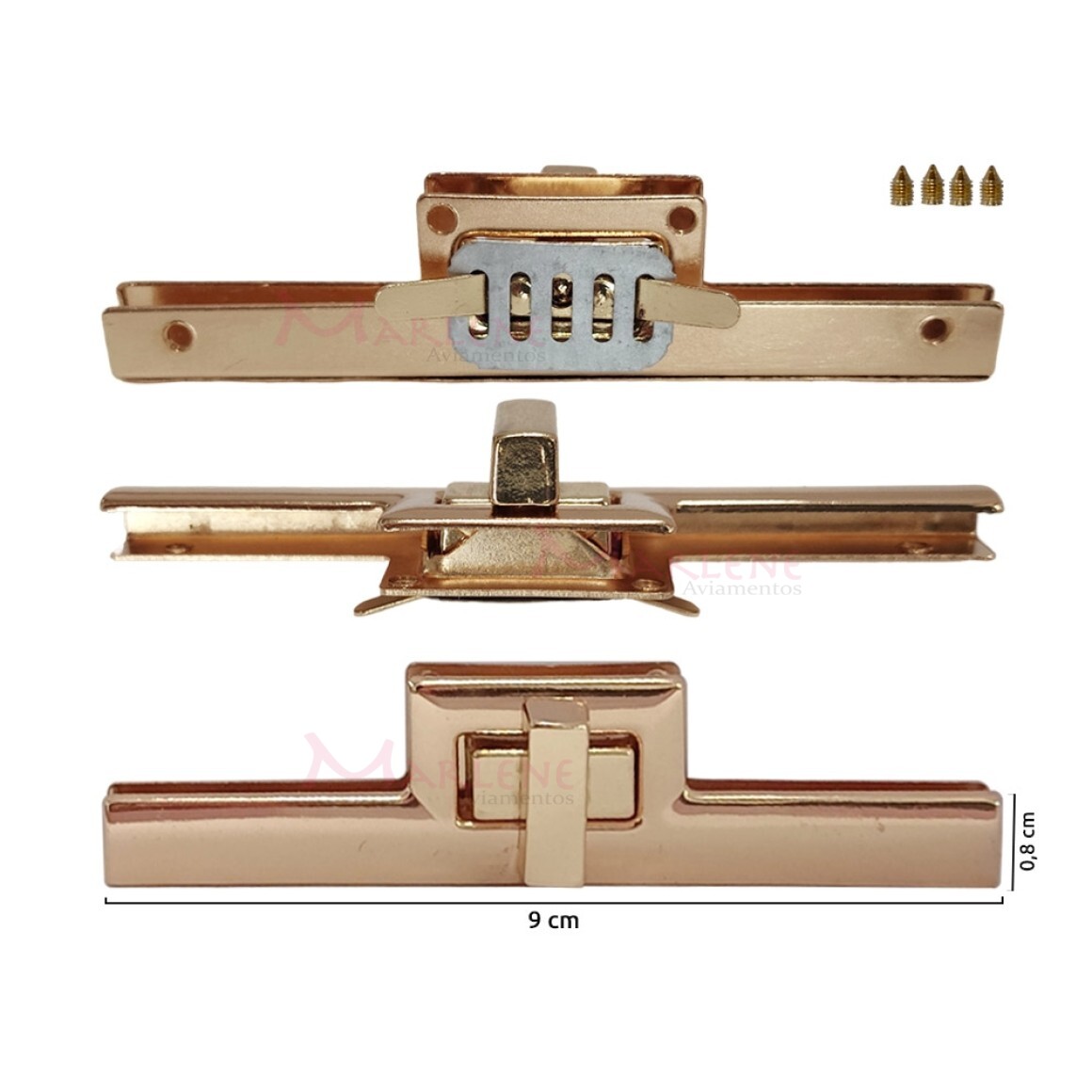 Detalhes: Fecho torniquete para tampa de bolsa cor ouro 9cm HYSK7005-1 com 1 unidade
