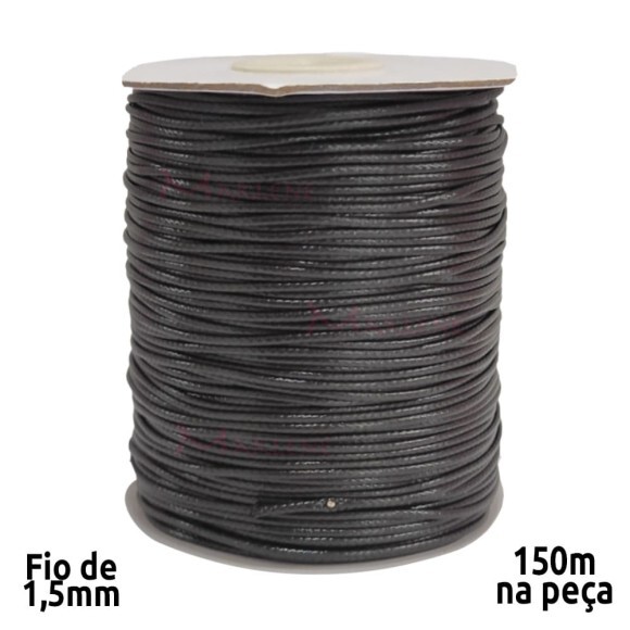 Fio encerado 1,5mm preto com 150m na peça HGLX