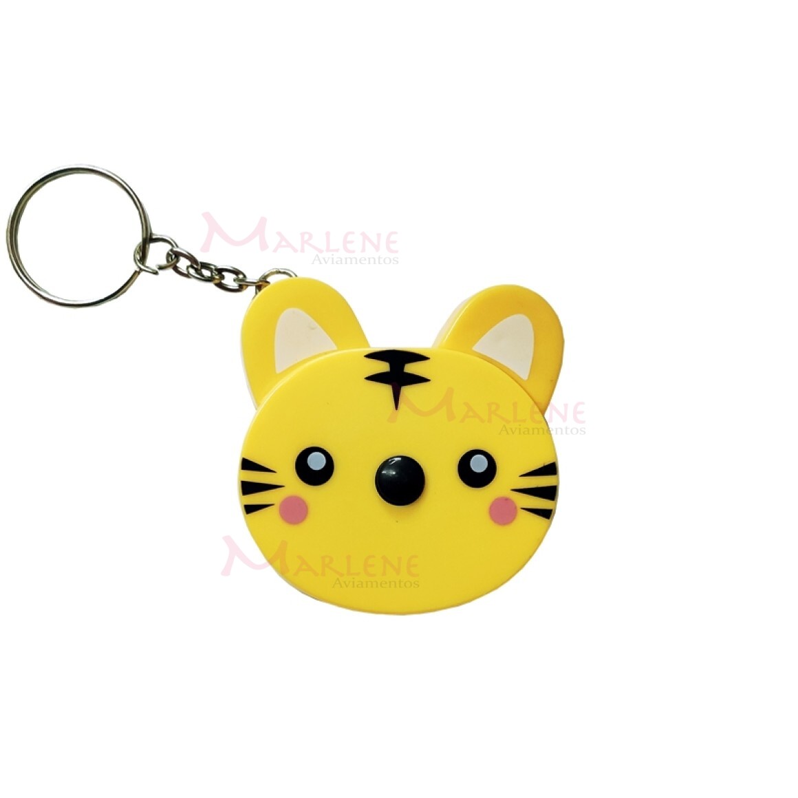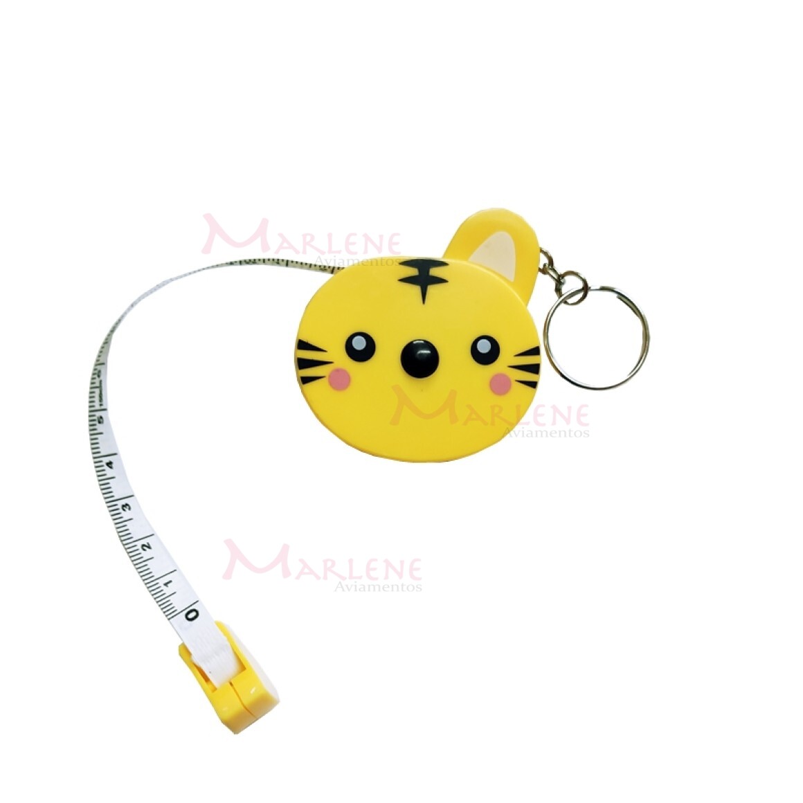Detalhes: Fita métrica tigre amarelo retrátil com chaveiro