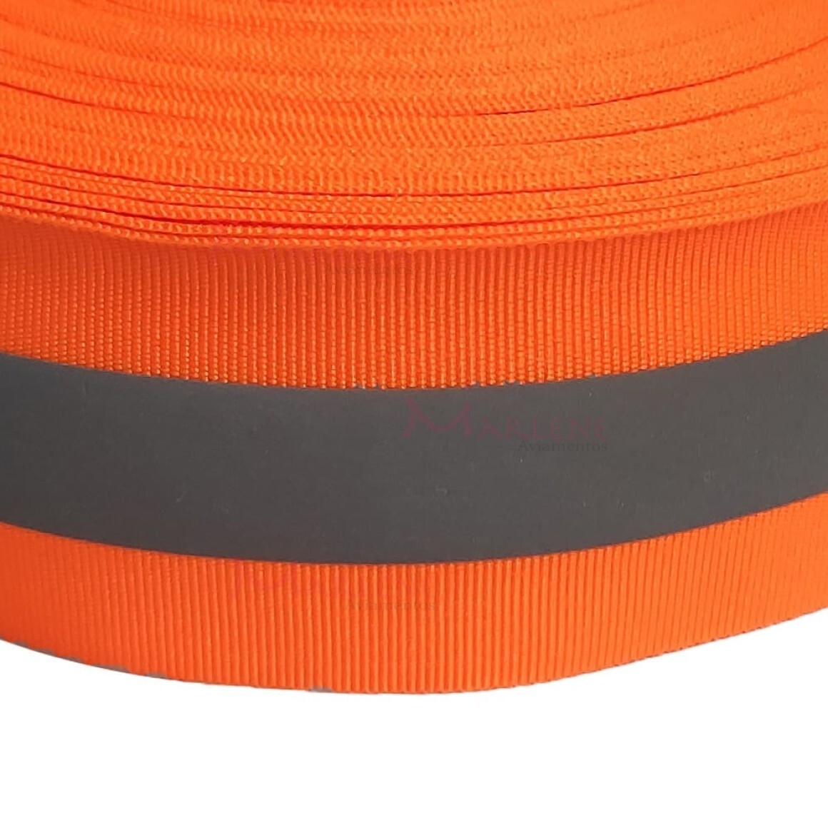 Detalhes: Fita refletiva 5cm laranja fluorescente por metro