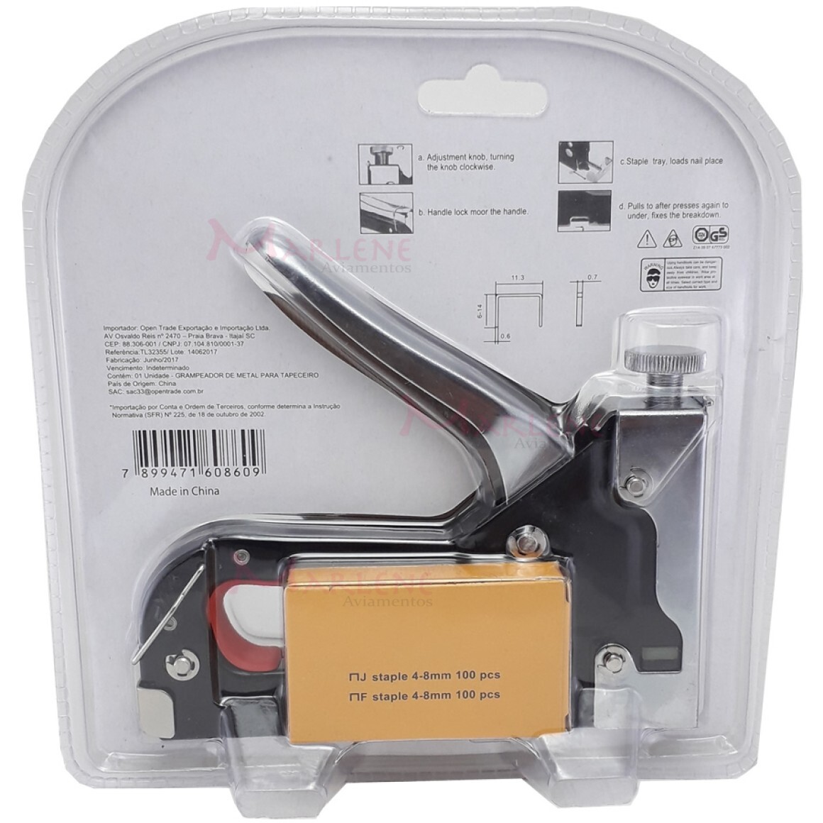 Uso: Usado para trabalhos em tapeçaria, móveis artesanato, entre outros. Serve para grampos de 8 a 14mm.