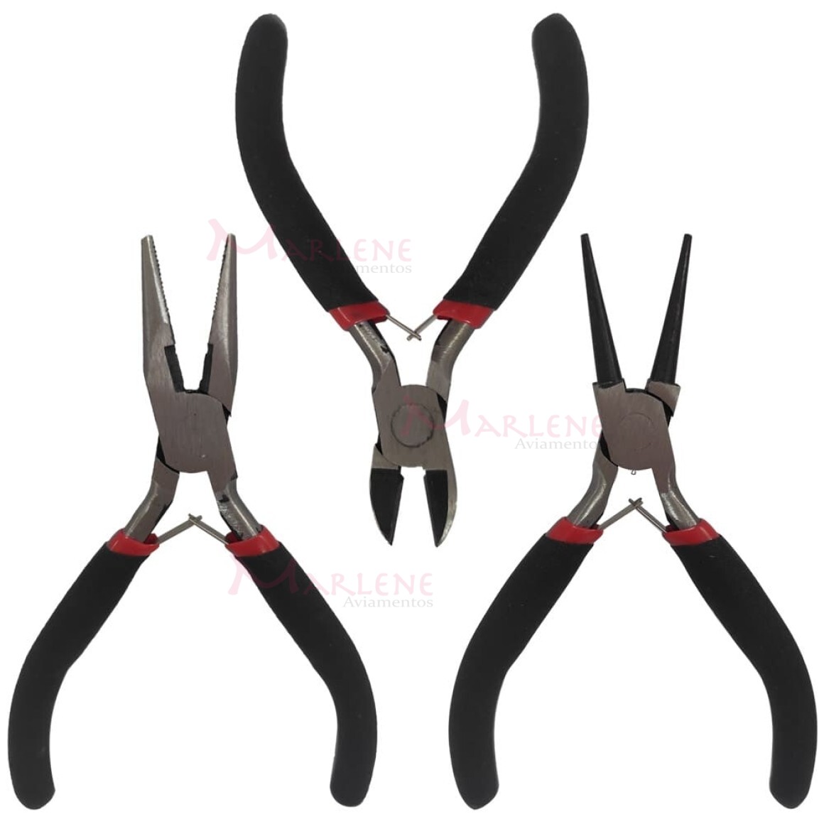 Quantidade: 1 kit (1 alicate ponta redondo, 1 alicate de corte e 1 alicate multiuso ponta chata)