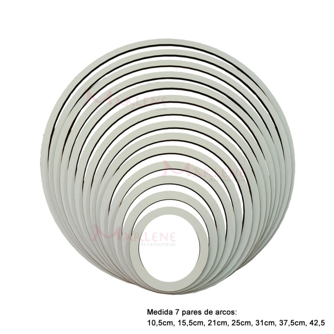 Tamanhos individual (medida externa): 10,5cm,12cm, 15,5cm, 18,5cm, 21cm, 23,5cm, 25cm, 28,50, 31cm, 35cm, 37,5cm, 40cm, 42,5cm e 45cm