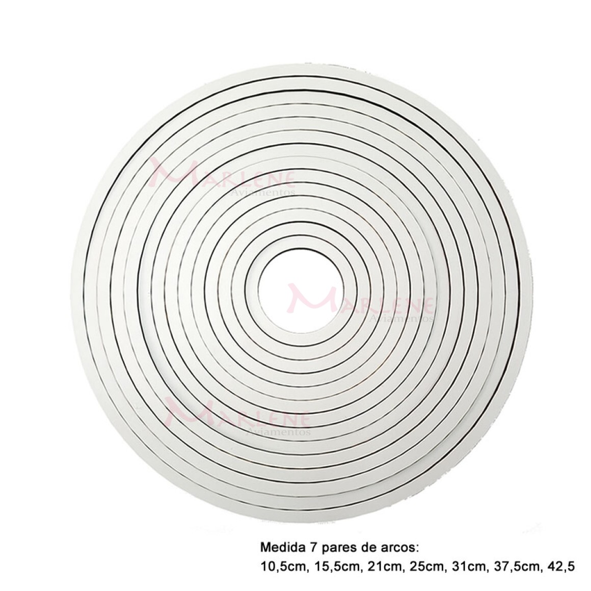 Tamanhos em pares: 10,5cm, 15,5cm, 21cm, 25cm, 31cm, 37,5cm, 42,5cm