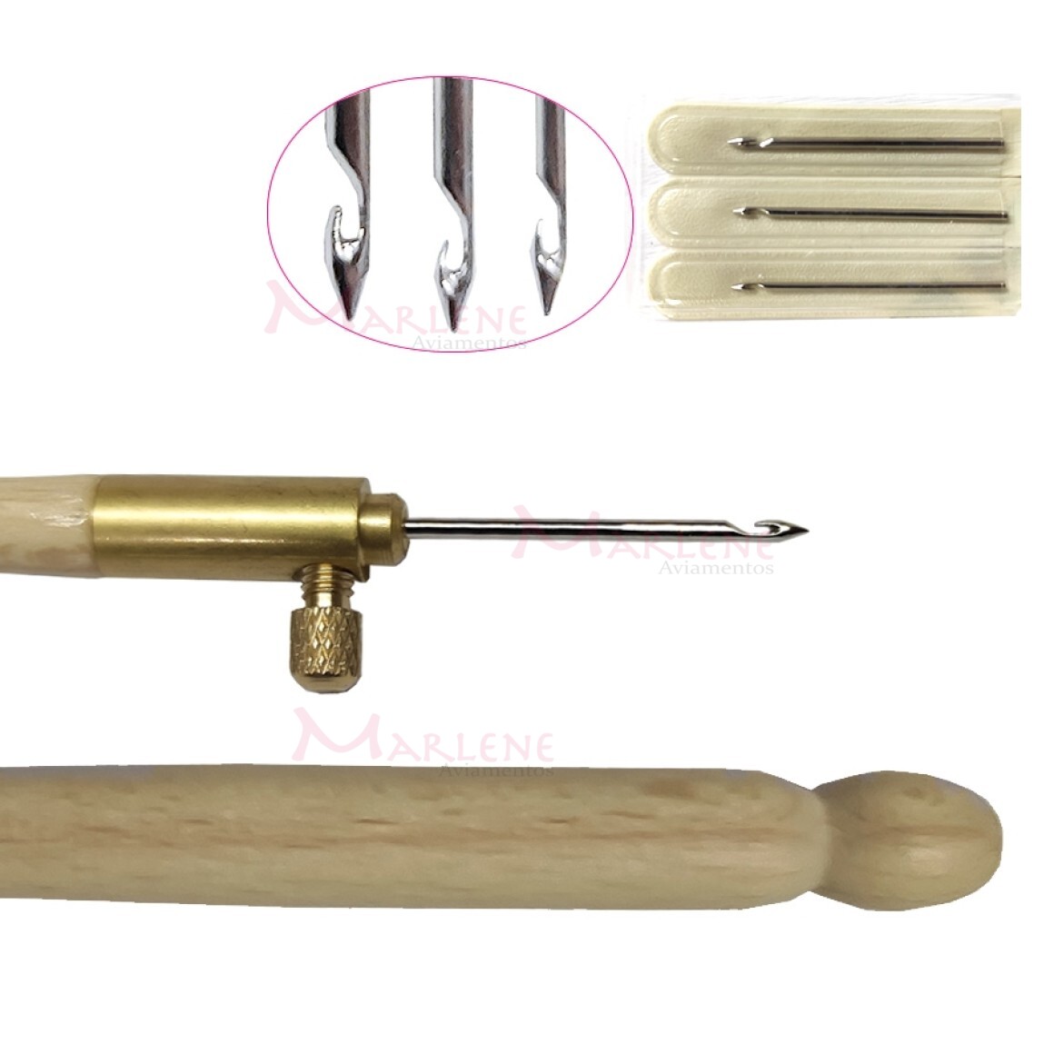 Quantidade: 3 agulhas e 1 cabo de madeira