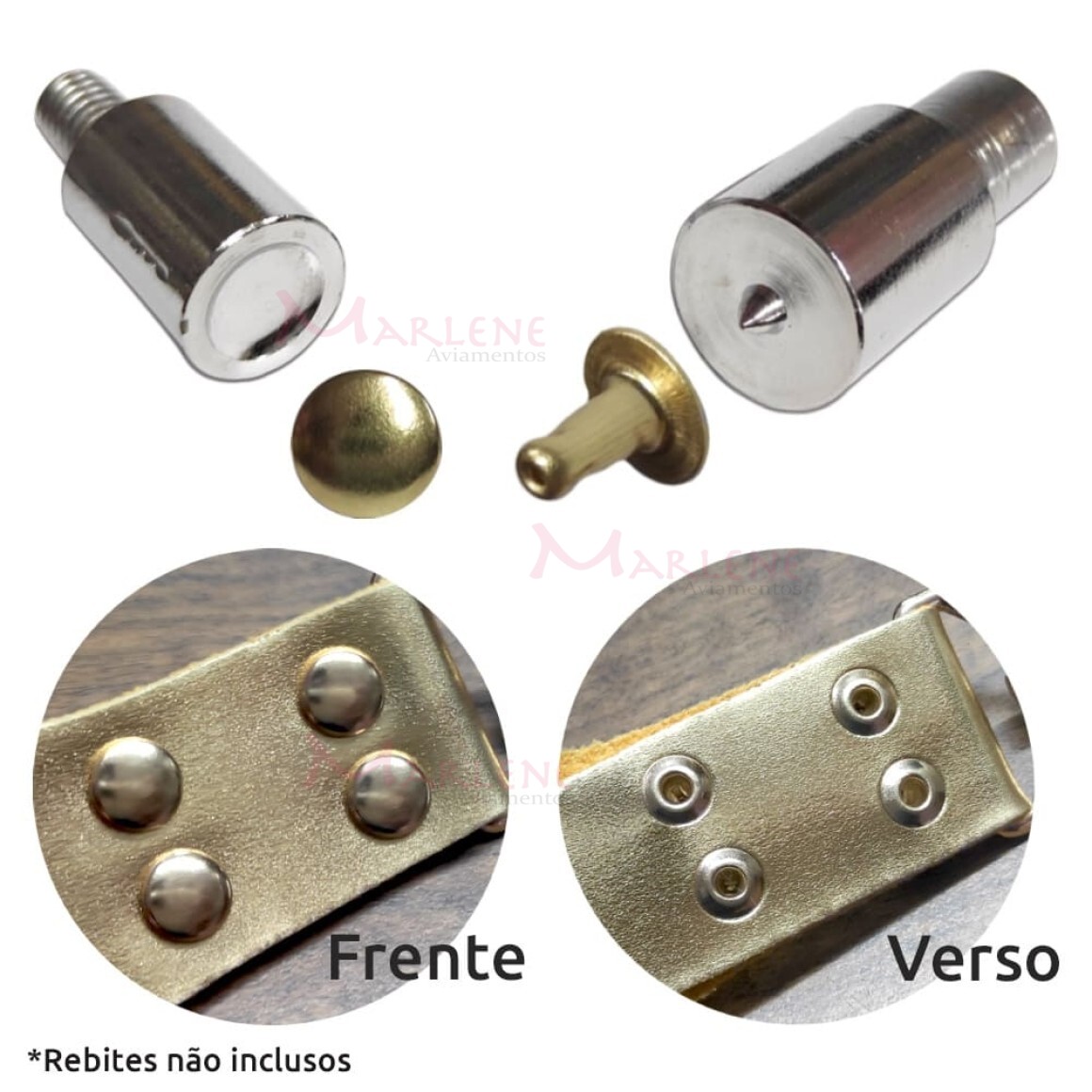 Uso: Usado para aplicação de rebites nº1,5 em alças de bolsas, roupas, entre outros, garantindo acabamento e elegancia para os materiais. Geralmente, essa matriz, serve especificamente só para esse tamanho de rebite, não sendo possível colocar outros tamanhos.