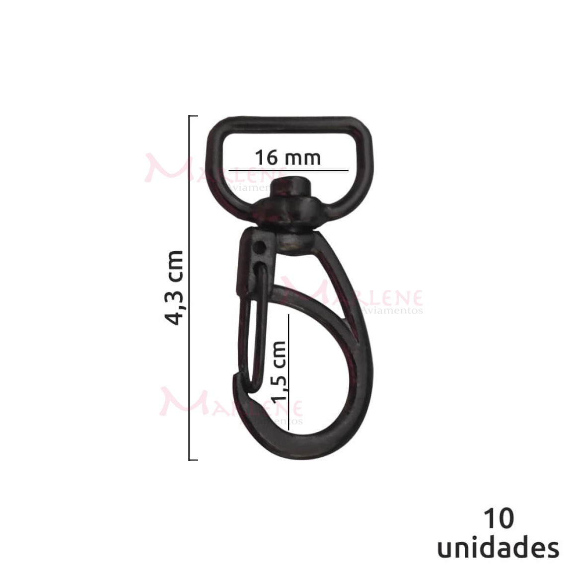 Detalhes: Mosquetão 16mm grafite 1166 aberto com 10 unidades