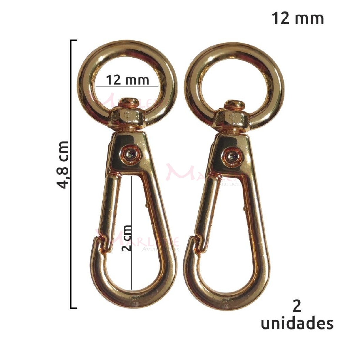 Detalhes: Mosquetão 12mm ouro MS-93 sem gatilho com 2 unidades