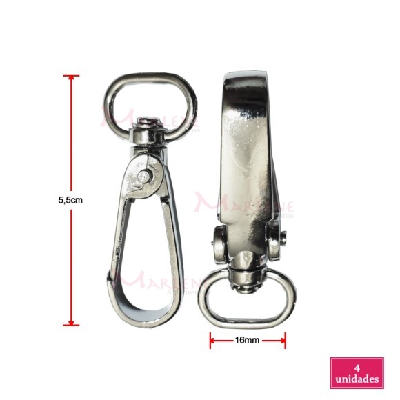 Detalhes: Mosquetão 16mm níquel chapado com 4 unidades no pacote, sem gatilho.