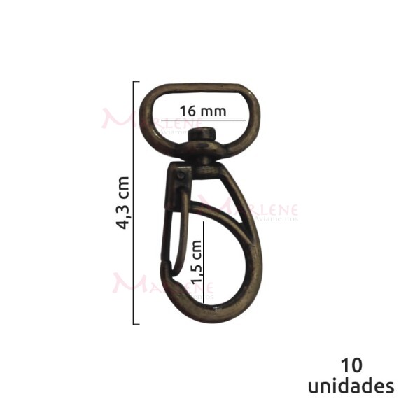 Detalhes: Mosquetão 16mm ouro velho 1166 aberto com 10 unidades