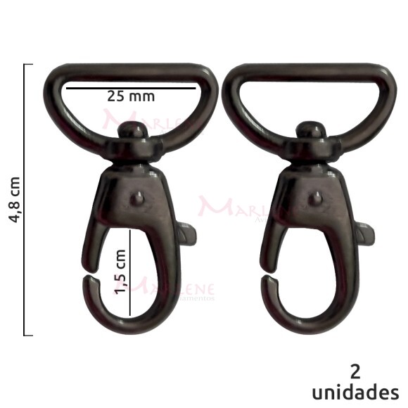 Detalhes: Mosquetão 25mm grafite gordo com gatilho 6004 com 2 unidades no pacote.