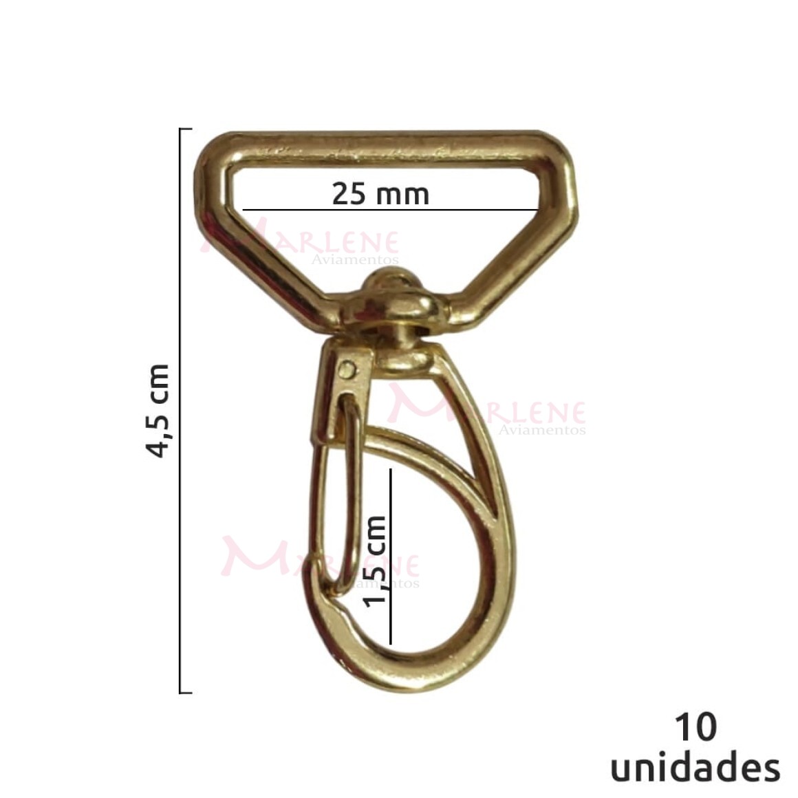 Detalhes: Mosquetão 25mm latonado 1166 aberto com 10 unidades
